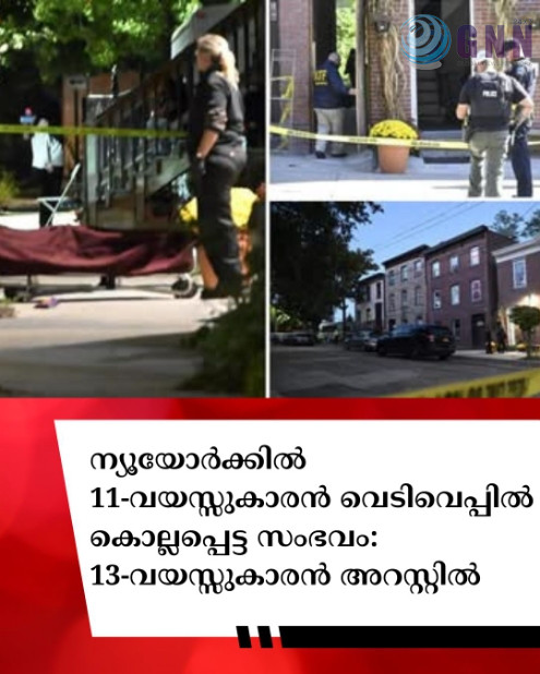 ന്യൂയോർക്ക്: ന്യൂയോർക്കിലെ ഒരു വീടിനുള്ളിൽ 11 വയസ്സുകാരനെ വെടിവച്ചുകൊന്ന കേസിൽ 13 വയസ്സുള്ള ഒരു ആൺകുട്ടിയെ അറസ്റ്റ് ചെയ്ത് രണ്ടാം ഡിഗ്രി കൊലപാതകക്കുറ്റം ചുമത്തി.