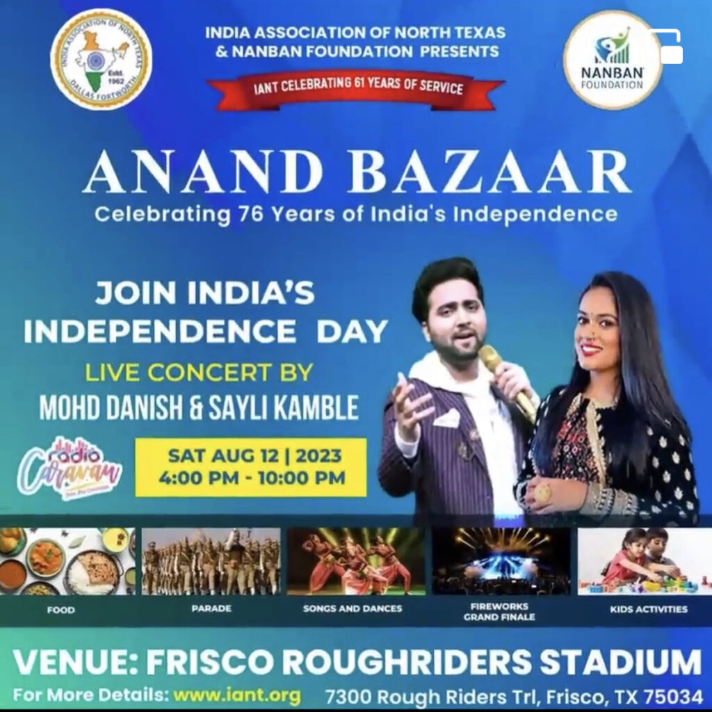 ആദ്യമായി മധ്യപ്രദേശ് അസോസിയേഷൻ ഓഫ് ഡാളസ് ആനന്ദ് ബസാറിൽ പങ്കെടുക്കുന്നു.