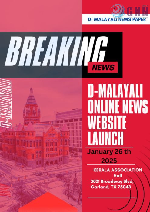 ഡാളസ്:ഡാലസിൽ നിന്നും പുറത്തിറക്കുന്ന “ഡി മലയാളി” ഓൺലൈൻ ദിന പത്രത്തിൻറെ സ്വിച്ച് ഓൺ കർമ്മം അമേരിക്കയിലെ മുതിർന്ന മാധ്യമപ്രവർത്തകൻ ബിനോയി സെബാസ്റ്റ്യൻ നിർവഹിക്കും. ജനുവരി 26 ഞായറാഴ്ച വൈകിട്ട് 5 മണിക്ക് ഡാലസ് കേരള അസോസിയേഷൻ ഓഫീസിൽ നടക്കുന്ന ഇന്ത്യ പ്രസ് ക്ലബ് ഓഫ് നോർത്ത് ടെക്സസ് അവാർഡ് വിതരണ ചടങ്ങിലാണ് പ്രകാശന കർമം ബിനോയി സെബാസ്റ്റ്യൻ നിർവഹിക്കുക.