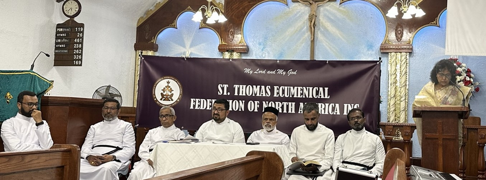 ന്യൂയോർക്ക് : ന്യൂ യോർക്കിലെ മലയാളി ക്രൈസ്തവ കൂട്ടായ്മയായ സെൻറ് തോമസ് എക്യൂമെനിക്കൽ ഫെഡറേഷൻ ഓഫ് നോർത്ത് അമേരിക്കയുടെ ആഭിമുഖ്യത്തിൽ സെൻറ് തോമസ് ദിനാചരണം ജൂലൈ 15-നു ഞായറാഴ്ച വില്ലിസ്റ്റൺ പാർക്കിലുള്ള സി എസ് ഐ ജൂബിലി മെമ്മോറിയൽ ചർച്ചിൽ വച്ച് നടന്നു. വൈകുന്നേരം 5 മണിക്ക് എക്യൂമെനിക്കൽ ഫെഡറേഷന്റെ പ്രസിഡന്റ് റവ. ഷാജി കൊച്ചുമ്മൻറെ അധ്യക്ഷതയിൽ കൂടിയായോഗത്തിൽ ന്യൂ യോർക്കിലുള്ള വിവിധ സഭകളിലെ വൈദീകരും സഭാവിശ്വാസികളും പങ്കെടുത്തു . “അപ്പോസ്തോലനായ വിശുദ്ധ തോമസിൻറെ അത്ഭുതകരവും വിശുദ്ധവുമായ ദൗത്യം” എന്ന വിഷയത്തെ ആസ്പദമാക്കിയുള്ള സെമിനാറിനു റവ. ജോൺ ഡേവിഡ്സൺ ജോൺസൻ നേതൃത്വം നൽകി. റവ. വി.ടി. തോമസ്, റവ. ജിബിൻ തമ്പി എന്നിവർ ആശംസകൾ അർപ്പിച്ചു. ഡോ. റേച്ചൽ ജോർജ് വേദപുസ്തക വായന നടത്തി. എക്യൂമെനിക്കൽ കൊയർ, ഓർത്തഡോൿസ് ചർച് കൊയർ, സി.എസ്. ഐ ജൂബിലി മെമ്മോറിയൽ ചർച് കൊയർ, ന്യൂ യോർക്ക് വോയ്സെസ് ഫോർ ക്രൈസ്റ്റ് കൊയർ എന്നീ ഗായകസംഘങ്ങൾ മനോഹരങ്ങളായ ഗാനങ്ങൾ ആലപിച്ചു.