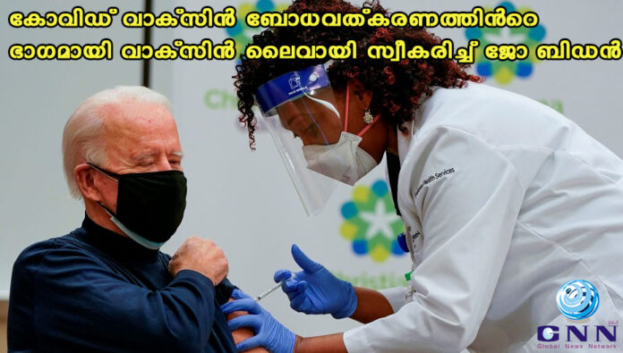 കോവിഡ് വാക്സിന് ബോധവത്കരണത്തിന്റെ ഭാഗമായി യുഎസ് പ്രസിഡന്റായി തിരഞ്ഞെടുക്കപ്പെട്ട ജോ ബിഡൻ തിങ്കളാഴ്ച കോവിഡ് -19 വാക്സിൻ സ്വീകരിച്ചു.