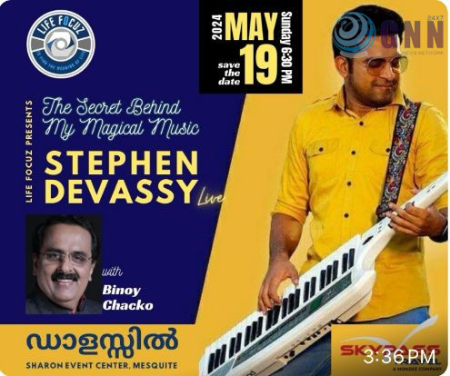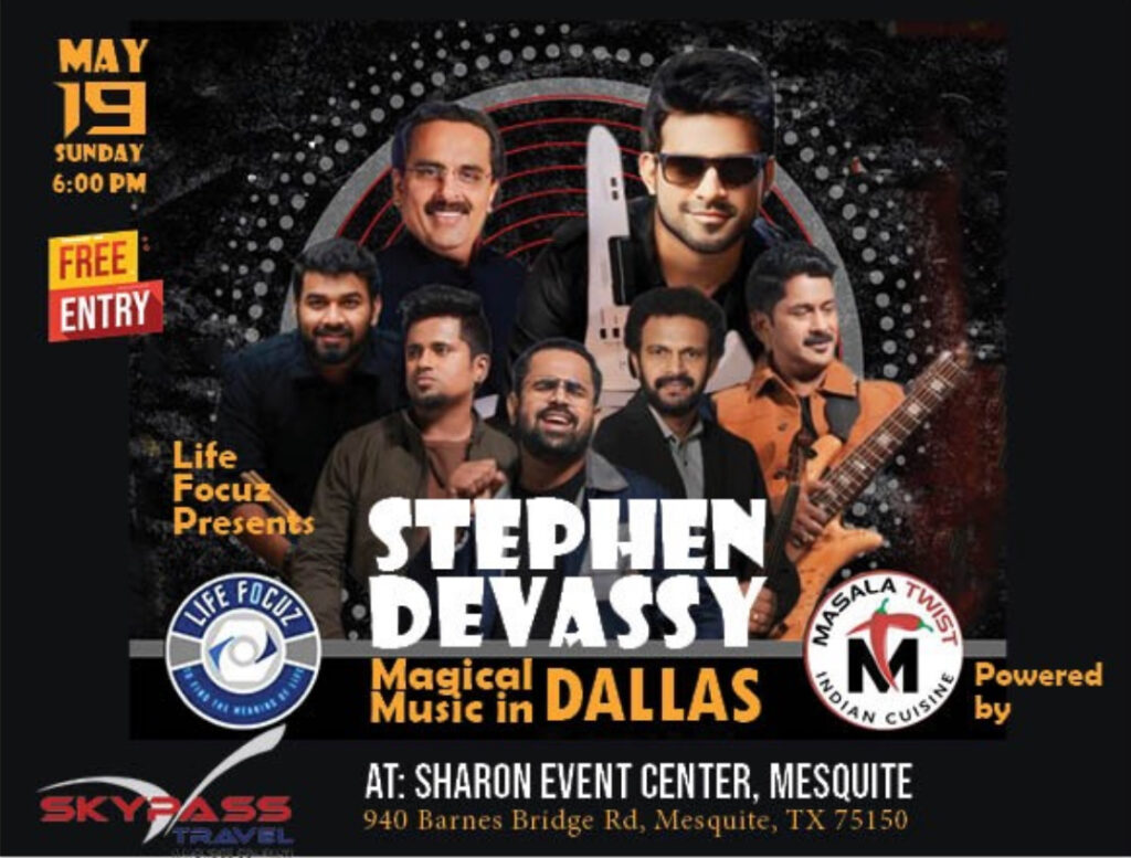 മസ്ക്വിറ്റ് (ഡാളസ്): സംഗീതോപകരണങ്ങളിൽ മാസ്മരിക താളമേളങ്ങളൊരുക്കുന്ന സ്റ്റീഫൻ ദേവസ്യ ടീം അവതരിപ്പിക്കുന്ന “മാജിക് മ്യൂസിക്” ഡാലസിൽ മെയ് 19 ന് അരങ്ങേറും. ലൈഫ് ഫോക്കസ് ഒരുക്കുന്ന സംഗീത പരിപാടിക്ക് വേദിയൊരുങ്ങുന്നത് അത്യാധുനിക സൗകര്യങ്ങളോടെ ഈയിടെ പണിതീർത്ത ഷാരൻ ഇവൻറ് സെന്ററിലാണ്.