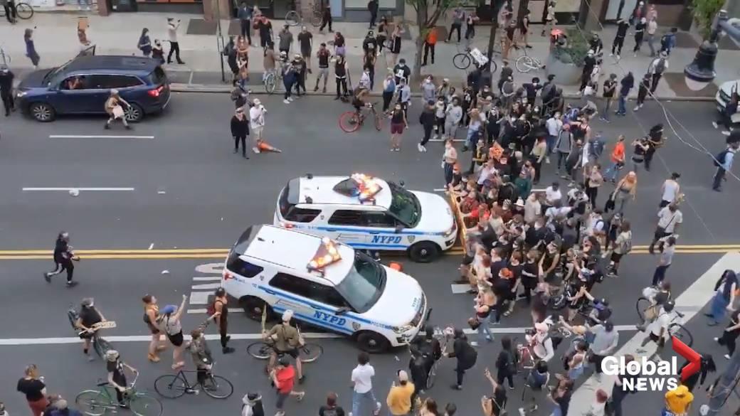 രാജ്യത്തെ വർണ്ണവിവേചനത്തിനെതിരെ തെരുവിലിറങ്ങിയ ആൾക്കൂട്ടത്തിനിടയിലേക്ക് ന്യൂയോർക്ക് പൊലീസിന്‍റെ വാഹനം ഓടിച്ചു കയറ്റുന്ന ദൃശ്യങ്ങളാണ് ഇപ്പോൾ വൈറലാകുന്നത്. ഒരു ബാരിക്കേഡിനപ്പുറം നിന്ന് പൊലീസ് വാഹനത്തെ ആളുകൾ തടയുകയും വസ്തുക്കൾ വലിച്ചെറിയുകയും ചെയ്‌തു. ഇതിനിടെയാണ് ബാരിക്കേഡിന് മുകളിലൂടെ മറ്റൊരു പൊലീസ് വാഹനം ജനക്കൂട്ടത്തിനിടയിലേക്ക് ഓടിച്ചു കയറ്റിയത്.