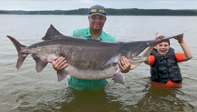 ഇതിനു മുമ്പത്തെ റിക്കാർഡ് ,ഈ തടാകത്തിൽ നിന്നു തന്നെ പിടി കൂടിയ 146 പൗണ്ടും 11 ഔൺസുമുള്ള പാഡിൽ ഫിഷായിരുന്നു. 1997- ജനുവരി നാലിന് കീസ്റ്റോൺലേക്ക് സാൾട്ട് ക്രീക്ക് ഏരിയയിൽ നിന്നും പിടികൂടിയ പുതിയ റെക്കോർഡ് ലഭിച്ച പാഡിൽ ഫിഷിന് അന്ന് 2 വർഷത്തെ വളർച്ചയും ഏഴ് പൗണ്ട് തൂക്കവും രണ്ടടി നീളവുമായിരുന്നുവെന്ന് ഒക്കലഹോമ സ്റ്റേറ്റ് യൂണിവേഴ്സിറ്റി ഗവേഷകർ പറഞ്ഞു.