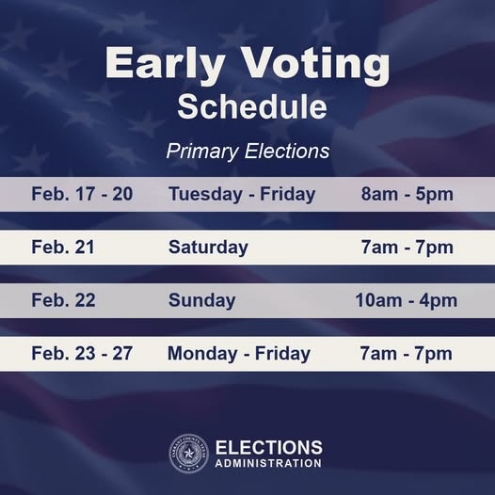 ഓസ്റ്റിൻ: ടെക്സസ് പ്രൈമറി തിരഞ്ഞെടുപ്പിന്റെ ആദ്യഘട്ട വോട്ടെടുപ്പ് (Early Voting) ചൊവ്വാഴ്ച ആരംഭിച്ചു. മാർച്ച് 3-നാണ് ഔദ്യോഗിക തിരഞ്ഞെടുപ്പ് ദിവസം. ഒരു സ്ഥാനാർത്ഥിക്കും 50%-ലധികം വോട്ട് ലഭിച്ചില്ലെങ്കിൽ മേയ് 26-ന് രണ്ടാം ഘട്ട വോട്ടെടുപ്പ് (Runoff) നടക്കും.