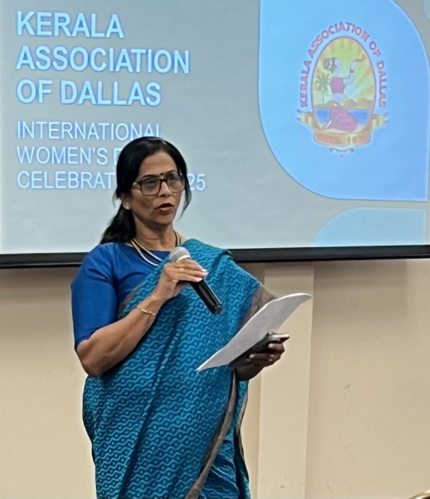 കേരള അസോസിയേഷൻ ഓഫ് ഡാളസ്സിന്റെ ആഭിമുഖ്യത്തിൽ അന്താരാഷ്ട്ര വനിതാ ദിനത്തിൽ മാർച്ച് 8 ശനി വൈകീട്ട് കെഎഡി/ഐസിഇസി ഹാളിൽ( 3821 ബ്രോഡ്വേ ഗാർലൻഡ്)സംഘടിപ്പിച്ച സമ്മേളനത്തിൽ മുഖ്യ പ്രഭാഷണം നടത്തുകയായിരുന്നു ഡോ. ആനി പോൾ.