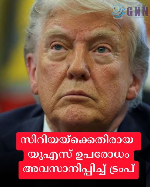 ന്യൂയോര്‍ക്ക്: സിറിയയ്ക്കെതിരായ യുഎസ് ഉപരോധം അവസാനിപ്പിച്ച് ട്രംപ്. സുപ്രധാന ഉത്തരവിൽ അമേരിക്കൻ പ്രസിഡന്‍റ്  ഡോണള്‍ഡ് ട്രംപ് ഒപ്പുവച്ചു. തീരുമാനം സിറിയയെ സമാധാന പാതയിലേക്ക് നയിക്കുമെന്ന് അമേരിക്ക വ്യക്തമാക്കി.