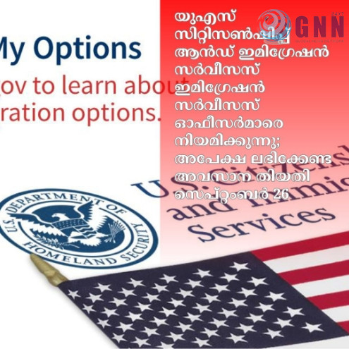 യുഎസ് സിറ്റിസൺഷിപ്പ് ആൻഡ് ഇമിഗ്രേഷൻ സർവീസസ് ഇമിഗ്രേഷൻ സർവീസസ് ഓഫീസർമാരെ നിയമിക്കുന്നു; അപേക്ഷ ലഭിക്കേണ്ട അവസാന തിയതി സെപ്റ്റംബർ 26