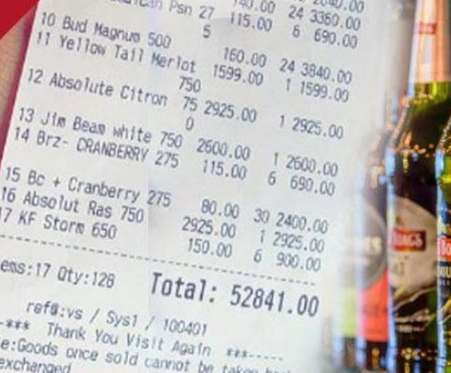 അതേ സമയം എട്ട് പേര് ചേര്ന്നാണ് മദ്യം വാങ്ങിയതെന്നും ഒരു കാര്ഡ് വച്ച് സൈ്വപ്പ് ചെയ്തതിനാലാണ് ഒറ്റ ബില്ലായി വന്നതെന്ന് മദ്യവില്പ്പന ശാല ഉടമ പറഞ്ഞു. മദ്യം വാങ്ങിയ ആളെ ഇത് വരെ തിരിച്ചറിഞ്ഞിട്ടില്ല.