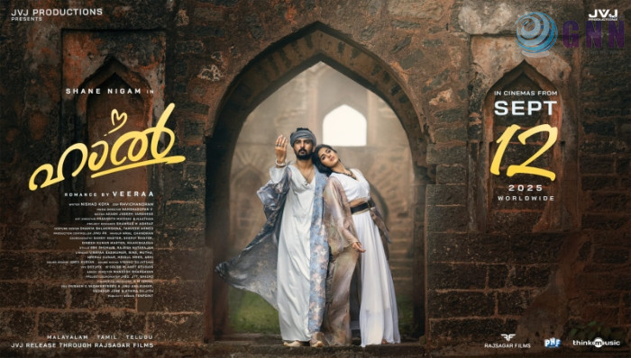 അഞ്ചു ഭാഷകളിലായി ഷെയ്ൻ നിഗത്തെ നായകനാക്കി വീരസംവിധാനം ചെയ്യുന്ന ഹാൽ എന്ന ചിത്രത്തിൻ്റെ റിലീസ് സെപ്റ്റംബർ പന്ത്രണ്ടിന് പ്രഖ്യാപിച്ചു കൊണ്ട് പോസ്റ്റർ പുറത്തുവിട്ടു. ഷെയ്ൻ നിഗവും നായിക
