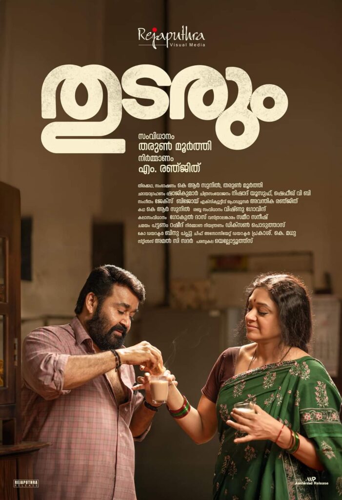 നീണ്ട ഇടവേളകൾക്കു ശേഷം മലയാളത്തിന്റെ പ്രിയപ്പെട്ട താര ജോഡികളായ മോഹൻലാൽ – ശോഭന കൂട്ടുകെട്ടിൽ ഒരുങ്ങുന്ന തുടരും എന്ന ചിത്രത്തിന്റെ നിർമ്മാണ പ്രവർത്തനങ്ങൾ പൂർത്തിയായി വരുന്നു. രജപുത്ര വിഷ്വൽ മീഡിയായുടെ ബാനറിൽ എം.രഞ്ജിത്ത് നിർമ്മിക്കുന്ന ഈ ചിത്രം യുവനിരയിലെ ശ്രദ്ധേയനായ തരുൺ മൂർത്തിയാണ് സംവിധാനം ചെയ്യുന്നത്.