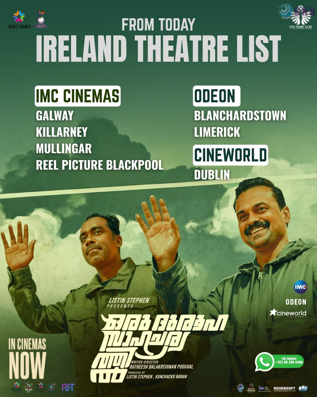 ഇന്ന് മുതൽ അയർലണ്ടിലെ വിവിധ തിയേറ്ററുകളിലാണ് ചിത്രം പ്രദർശനം ആരംഭിച്ചിരിക്കുന്നത്. IMC Cinemas-ന്റെ Galway, Killarney, Mullingar, Blackpool കേന്ദ്രങ്ങളിലുമായി, ODEON-ന്റെ Blanchardstown, Limerick തിയേറ്ററുകളിലും, Cineworld Dublin-ലുമാണ് പ്രദർശനം.