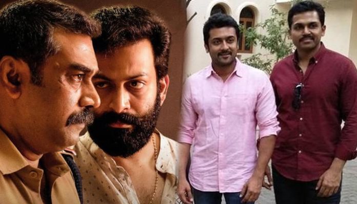 ബിജു മേനോന് അവതരിപ്പിച്ച അയ്യപ്പന്റെ വേഷം സൂര്യയും പൃഥ്വിരാജ് ചെയ്ത കോശിയുടെ വേഷം കാര്ത്തിയും അവതരിപ്പിക്കുമെന്നാണ് റിപ്പോര്ട്ട്. നിര്മ്മാതാവ് കതിര്സേനനാകും ചിത്രം നിര്മ്മിക്കുക. ആടുകളം, ജിതര്തണ്ട, പൊള്ളാതവന് എന്നീ ചിത്രങ്ങളുടെ നിര്മ്മാതാവാണ് കതിര്സേനന്.
