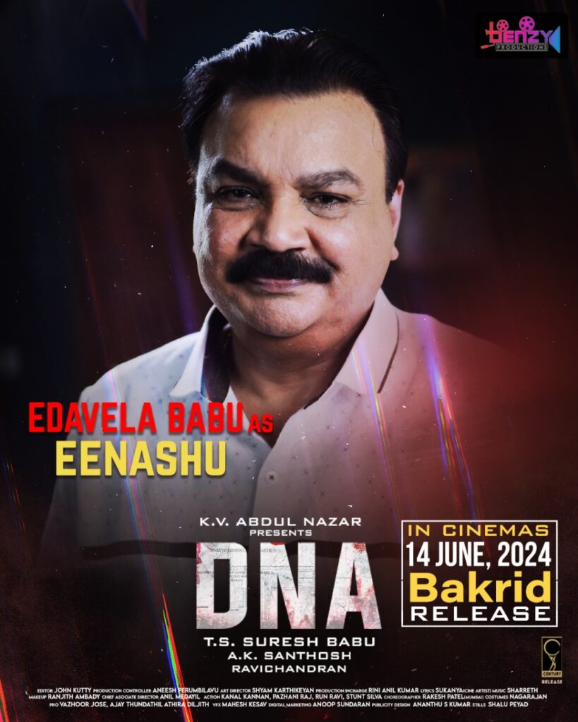 ടി.എസ്.സുരേഷ് ബാബു സംവിധാനം ചെയ്യുന്ന ഡി.എൻ.എ. എന്ന ചിത്രത്തിൻ്റെ മൂന്നു ക്യാരക്ടർ പോസ്റ്റർ കൂടി പുറത്തുവിട്ടിരിക്കുന്നു. അനുഗ്രഹീതനായ ഹരിഹരൻ സംവിധാനം ചെയ്ത് ഏറെ ശ്രദ്ധേയമായ നഖക്ഷതങ്ങൾ എന്ന ചിത്രത്തിലൂടെ നായികയായി അരങ്ങേറുകയും പിന്നീട് നിരവധി ചിത്രങ്ങളിലൂടെ പ്രേക്ഷകരുടെ മനസ്സിൽ ഇടംതേടുകയും ചെയ്ത സലീമ വലിയൊരു ഇടവേളക്കുശേഷം ഒരു മലയാള സിനിമയിൽ അഭിനയിക്കുന്നത് ഈ ചിത്രത്തിലാണ്. ഈ ചിത്രത്തിലെ പാട്ടി എന്ന കഥാപാത്രത്തെയാണ് സലീമ അവതരിപ്പിക്കുന്നത്. ശക്തമായ ഒരു ക്യാരക്ടർ റോളാണ് സലീമയുടെ പാട്ടി.