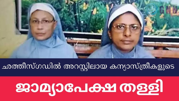 ദുർഗ്: മനുഷ്യക്കടത്ത് ആരോപിച്ച് ഛത്തീസ്ഗഡിൽ അറസ്റ്റിലായ രണ്ട് മലയാളി കന്യാസ്ത്രീകളുടെ ജാമ്യാപേക്ഷ തള്ളി. രണ്ട് കന്യാസ്ത്രീകളും ദുർഗിലെ സെൻട്രൽ ജയിലിൽ തുടരും. സെഷൻ കോർട്ടിലേക്കാണ് ഇനി ജാമ്യാപേക്ഷ സംബന്ധിച്ച നടപടികൾ എത്തുന്നത്.