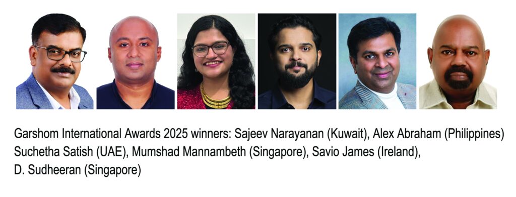 ബംഗളൂരു: ഗർഷോം ഫൗണ്ടേഷന്റെ 2025ലെ ഗർഷോം രാജ്യാന്തര പുരസ്കാരങ്ങൾ പ്രഖ്യാപിച്ചു. സജീവ് നാരായണൻ (കുവൈറ്റ്), അലക്സ് അബ്രഹാം (ഫിലിപ്പീൻസ്), സുചേത സതീഷ് (യു എ ഇ), മുംഷാദ് മന്നംബേത്ത് (സിംഗപ്പൂർ), സാവിയോ ജെയിംസ് (അയർലൻഡ്), ഡി. സുധീരൻ (സിംഗപ്പൂർ) എന്നിവരാണ് 20 -ാമത് ഗർഷോം പുരസ്കാരങ്ങൾക്ക് അർഹരായത്. മികച്ച മലയാളി സംഘടനയ്ക്കുള്ല അവാർഡിന് റഷ്യയിലെ ഓൾ മോസ്കോ മലയാളി അസോസിയേഷൻ (അമ്മ) തിരഞ്ഞെടുക്കപ്പെട്ടു.