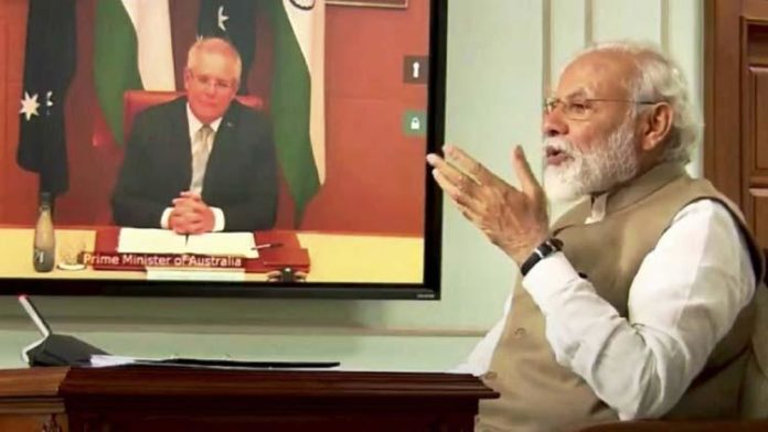 ന്യൂഡൽഹി: പ്രതിരോധരംഗത്ത് പരസ്പര സഹകരണത്തിനുള്ള ഉടമ്പടിയിൽ ഇന്ത്യയും ഓസ്ട്രേലിയയും ഒപ്പുവെച്ചു. പ്രധാനമന്ത്രി നരേന്ദ്ര മോദിയും ഓസ്ട്രേലിയൻ പ്രധാനമന്ത്രി സ്കോട്ട് മോറിസണും തമ്മിൽ നടത്തിയ ഓൺലൈൻ ചർച്ചയിലാണ് ചരിത്രപരമെന്ന് വിശേഷിപ്പിക്കപ്പെടുന്ന നീക്കം.