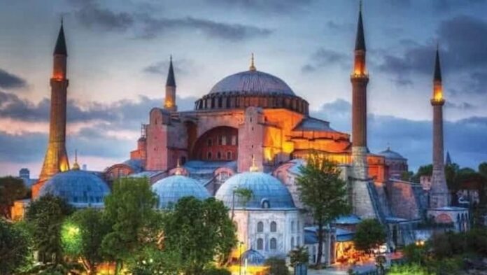 ബൈസന്റെയിന് ചക്രവര്ത്തി ജസ്റ്റീനിയന് ഒന്നാമന് 537 ലാണ് ക്രിസ്തീയ ദേവലയമായി ഹാഗിയ സോഫിയ പണികഴിപ്പിച്ചത്, പിന്നീട് 1453 ല് ഓട്ടമന് തുര്ക്കികള് കോണ്സ്റ്റാന്റിനോപ്പിള് പിടിച്ചെടുത്തതോടെ ഹാഗിയ സോഫിയ മുസ്ലിം ആരാധനാലയം ആക്കി മാറ്റുകയായിരുന്നു.