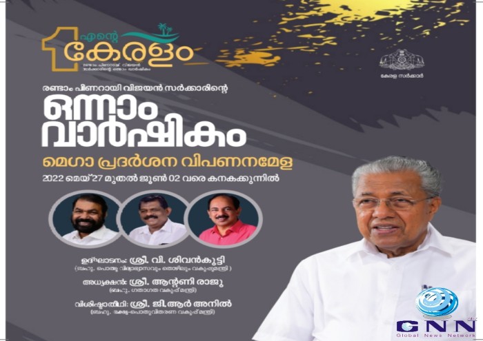 തിരുവനന്തപുരം :രണ്ടാം പിണറായി സർക്കാരിന്റെ ഒന്നാം വാർഷിക ആഘോഷങ്ങളുടെ സമാപനം തിരുവനന്തപുരത്ത് നടക്കും.വാർഷികത്തിന്റെ ഭാഗമായ എന്റെ കേരളം മെഗാ പ്രദർശന വിപണന മേളയ്ക്ക് നാളെ തുടക്കമാകും.മെയ് 27 മുതൽ ജൂൺ രണ്ട് വരെ കനകക്കുന്നിലാണ് ആഘോഷ പരിപാടികൾ നടക്കുന്നത്.