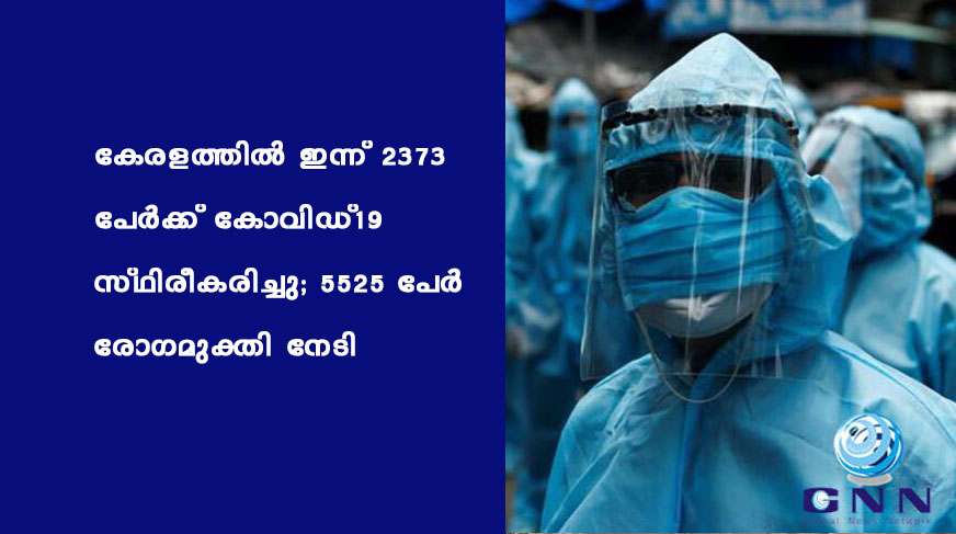 തിരുവനന്തപുരം: കേരളത്തിൽ ഇന്ന് 2373 പേര്ക്ക് കോവിഡ്-19 സ്ഥിരീകരിച്ചു. കഴിഞ്ഞ 24 മണിക്കൂറിനിടെ 36,747 സാമ്പിളുകളാണ് പരിശോധിച്ചത്. ഇന്ന് രോഗം സ്ഥിരീകരിച്ചവരില് 8 പേര് സംസ്ഥാനത്തിന് പുറത്ത് നിന്നും വന്നവരാണ്. 2237 പേര്ക്ക് സമ്പര്ക്കത്തിലൂടെയാണ് രോഗം ബാധിച്ചത്. 102 പേരുടെ സമ്പര്ക്ക ഉറവിടം വ്യക്തമല്ല. 26 ആരോഗ്യ പ്രവര്ത്തകര്ക്കാണ് രോഗം ബാധിച്ചത്.