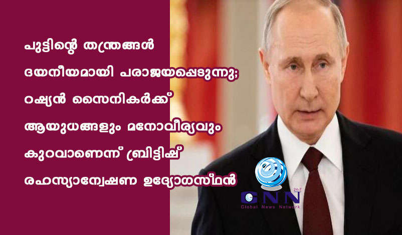 ലണ്ടൻ: യുക്രെയ്ൻ അധിനിവേശത്തിന് ഉത്തരവിട്ട റഷ്യൻ പ്രസിഡന്റ് വ്ലാഡിമിർ പുട്ടിന്റെ തന്ത്രങ്ങൾ ദയനീയമായി പരാജയപ്പെടുന്ന കാഴ്ചയാണ് ലോകം കാണുന്നതെന്നു ബ്രിട്ടിഷ് രഹസ്യാന്വേഷണ വിഭാഗത്തിലെ ഉന്നത ഉദ്യോഗസ്ഥൻ ജെറമി ഫ്ലെമിങ്. റഷ്യൻ സൈനികർക്ക് ആയുധങ്ങളും മനോവീര്യവും കുറവാണ്, പല ഉത്തരവുകളും നടപ്പിലാക്കാൻ അവർ വിസമ്മതിക്കുന്നു. സൈനികർ സ്വന്തം ഉപകരണങ്ങൾ അട്ടിമറിക്കുകയും അബദ്ധത്തിൽ സ്വന്തം യുദ്ധവിമാനം വെടിവച്ച് വീഴ്ത്തുകയും ചെയ്തതായി ജെറമി ഫ്ലെമിങ് പറഞ്ഞു.