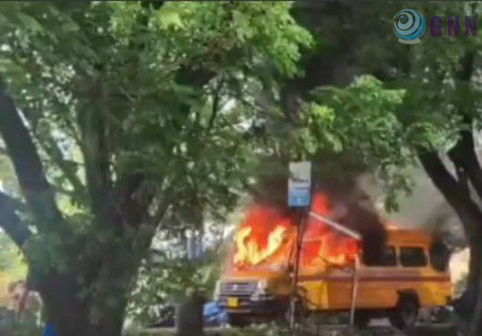 കുട്ടികളുമായി പോയ സ്കൂൾ ബസ് പൂർണ്ണമായും കത്തി നശിച്ചു; ഒഴിവായത് വൻ ദുരന്തം