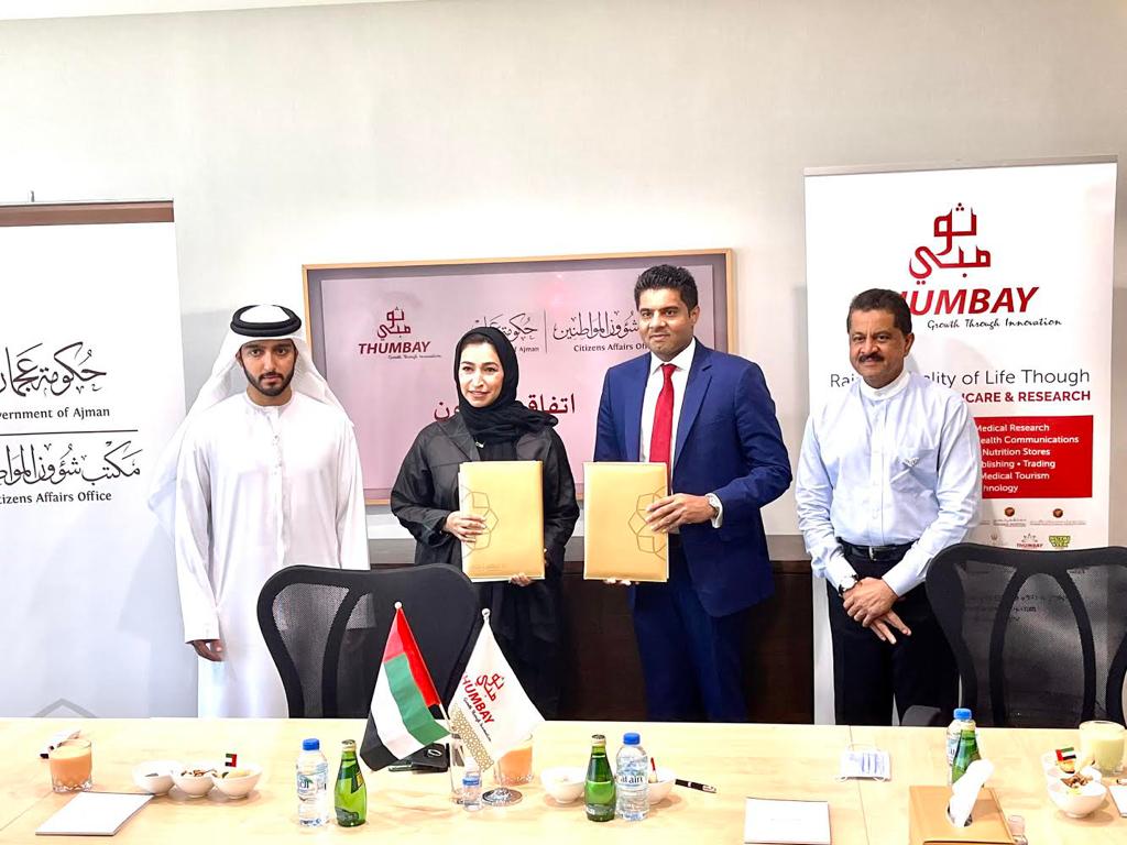 അജ്മാൻ എമിറേറ്റിലെ എല്ലാ യു.എ.ഇ പൗരന്മാരുടെയും വിദ്യാഭ്യാസം, ആരോഗ്യ സംരക്ഷണം, ലബോറട്ടറി സേവനങ്ങൾ തുടങ്ങിയ സാമൂഹിക ആവശ്യങ്ങൾ പരിഹരിയ്ക്കുന്നതിന് യു.എ.ഇ സുപ്രീം കൗൺസിൽ അംഗവും അജ്മാൻ ഭരണാധികാരിയുമായ ഷെയ്ഖ് ഹുമൈദ് ബിൻ റാഷിദ് അൽ നുഐമി രൂപീകരിച്ച സിറ്റിസൺ അഫയേഴ്സ് ഓഫീസും തുംബെ ഗ്രൂപ്പുമായി ധാരണാപത്രം ഒപ്പിട്ടു.