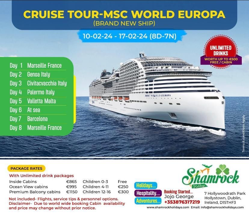 അയർലണ്ടിൽ ക്രൂയിസ് യാത്രയുടെ കൂടുതൽ വിവരങ്ങൾ അറിയുന്നതിന് ബന്ധപ്പെടുക :