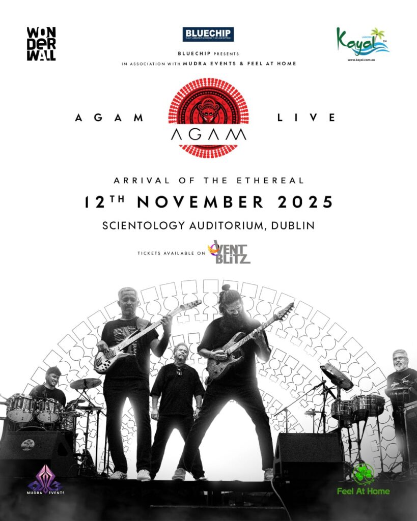 ഇന്ത്യയിലെ ഏക “കാർണാറ്റിക് പ്രോഗ്രസീവ് റോക് ബാൻഡ്” ആയ അഗം നവംബർ 12, 2025-ന് ഡബ്ലിനിലെ സയന്റോളജി സെന്ററിൽ വേദിയൊരുക്കുന്നു. സംഗീതരംഗത്ത് 18 വര്‍ഷം തനതായ മുദ്ര പതിപ്പിച്ച ബാൻഡായ അഗം, അവരുടെ മൂന്നാമത്തെ സ്റ്റുഡിയോ ആൽബമായ ‘Arrival of the Ethereal’ സഹിതം ലോക പര്യടനം നടത്തുകയാണ് — ഈ ആൽബം ഇപ്പോൾ 2025-ലെ ഗ്രാമി പരിഗണനയ്ക്ക് തിരഞ്ഞെടുക്കപ്പെട്ടിരിക്കുന്നു.