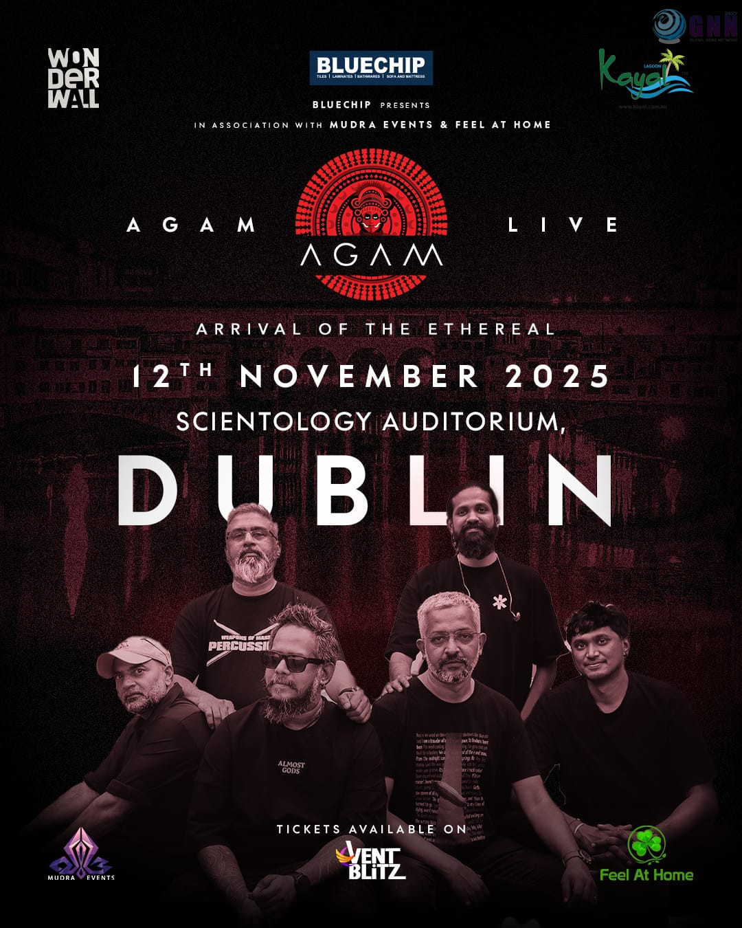 ഇന്ത്യയിലെ ഏക “കാർണാറ്റിക് പ്രോഗ്രസീവ് റോക് ബാൻഡ്” ആയ അഗം നവംബർ 12, 2025-ന് ഡബ്ലിനിലെ സയന്റോളജി സെന്ററിൽ വേദിയൊരുക്കുന്നു. സംഗീതരംഗത്ത് 18 വര്‍ഷം തനതായ മുദ്ര പതിപ്പിച്ച ബാൻഡായ അഗം, അവരുടെ മൂന്നാമത്തെ സ്റ്റുഡിയോ ആൽബമായ ‘Arrival of the Ethereal’ സഹിതം ലോക പര്യടനം നടത്തുകയാണ് — ഈ ആൽബം ഇപ്പോൾ 2025-ലെ ഗ്രാമി പരിഗണനയ്ക്ക് തിരഞ്ഞെടുക്കപ്പെട്ടിരിക്കുന്നു.
