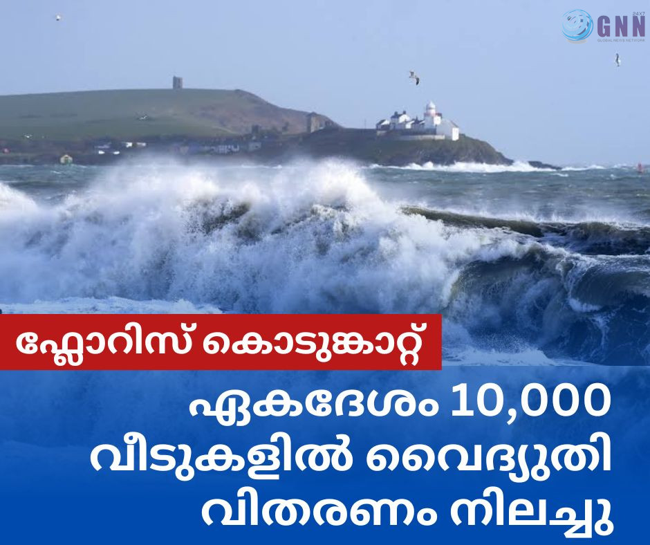 അയർലണ്ടിൽ ഏകദേശം 10,000 വീടുകളിലും വ്യാപാര സ്ഥാപനങ്ങളിലും വൈദ്യുതി വിതരണം നിലച്ചു. ഫ്ലോറിസ് കൊടുങ്കാറ്റ് കര തൊട്ടതിനെ തുടർന്ന്, വിവിധ ഭാഗങ്ങളിൽ ശക്തമായ കാറ്റും വെള്ളപ്പൊക്കവുമുണ്ടായി. ഗാൽവേ, ക്ലെയർ, മായോ, ഡൊണഗൽ എന്നിവയാണ് ഏറ്റവും കൂടുതൽ നാശനഷ്ടങ്ങൾ സംഭവിച്ച കൗണ്ടികൾ. വൈദ്യുതി തകരാറുകൾ പുനഃസ്ഥാപിക്കുന്നതിനായി പ്രവർത്തികൾ പുരോഗമിക്കുകയാണ്. ഫ്ലോറിസ് കൊടുങ്കാറ്റ് രാത്രിയിൽ രാജ്യത്ത് ആഞ്ഞടിക്കുന്നതിനാൽ എട്ട് കൗണ്ടികൾക്ക് കാലാവസ്ഥാ മുന്നറിയിപ്പുകൾ നിലവിലുണ്ട്.അപകടകരമായ യാത്രാ സാഹചര്യങ്ങൾ, വൈദ്യുതി തടസ്സങ്ങൾ, നാശനഷ്ടങ്ങൾ എന്നിവയെക്കുറിച്ച് മെറ്റ് ഐറാൻ മുന്നറിയിപ്പ് നൽകിയിട്ടുണ്ട്.
