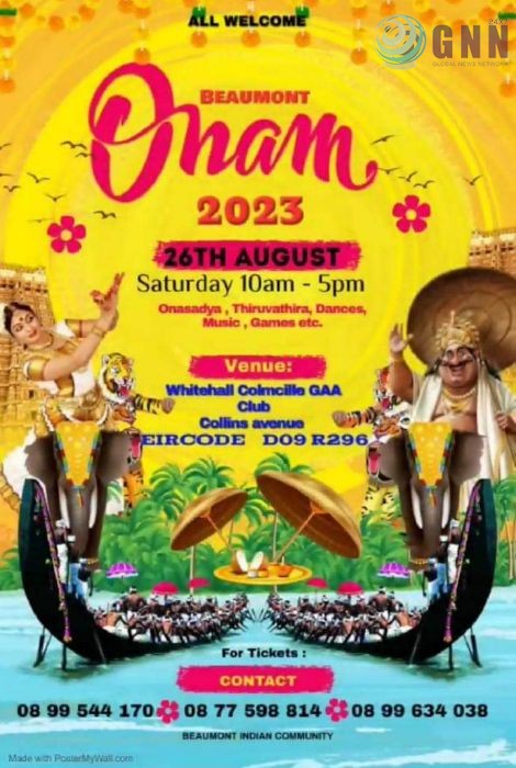 Beaumont ഇന്ത്യന് കമ്മ്യൂണിറ്റി ഇത്തവണത്തെ ഓണാഘോഷത്തിനായി ഒരുങ്ങി കഴിഞ്ഞു. ഓഗസ്റ്റ് 26 ശനിയാഴ്ച വര്ണ്ണശബളമായ വിവിധ പരിപാടികളോടെയാണ് ഓണാഘോഷം നടത്തുന്നത്. Whitehall colmcille GAA club Collins Avenuവില് വെച്ചാണ് പരിപാടികള് നടക്കുന്നത്.