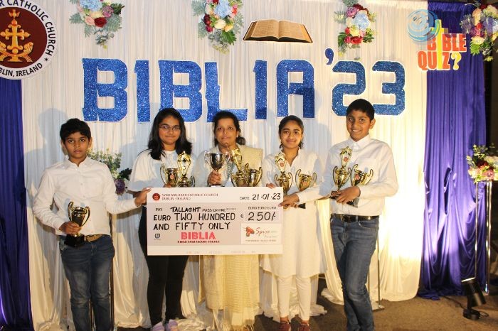 ബൈബിളിനേക്കുറിച്ചും സഭയിലെ വിശുദ്ധരേക്കുറിച്ചും കൂടുതൽ അറിവുനേടാൻ വിശ്വാസസമൂഹത്തെ പ്രാപ് തരാക്കുക എന്ന ലക്ഷ്യത്തോടെ ഡബ്ലിൻ സീറോ മലബാർ സഭയുടെ മതബോധന വിഭാഗം വർഷങ്ങളായി സംഘടിപ്പിച്ചുവരുന്ന ബൈബിൾ ക്വിസ് മത്സരങ്ങളിൽ ഈ വർഷം പതിനൊന്ന് കുർബാന സെൻ്ററുകളിൽ നിന്നായി 600 ൽ ഏറെ വിശ്വാസികൾ പങ്കെടുത്തു. ഡബ്ലിൻ സോണൽ തലത്തിൽ വിജയികൾ ആയവർ.