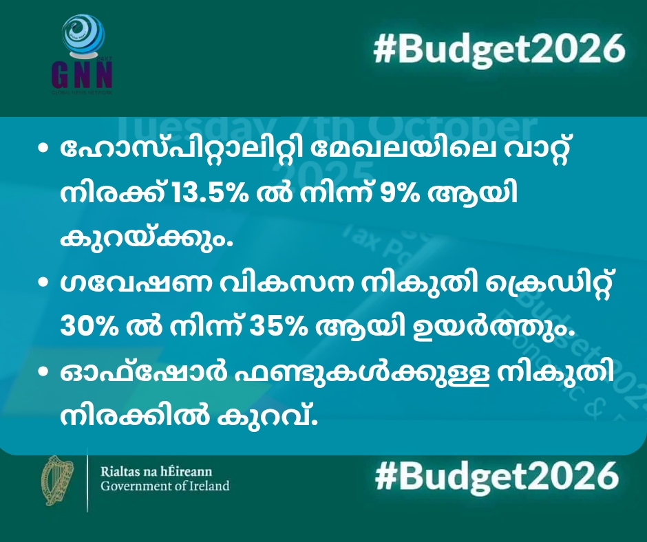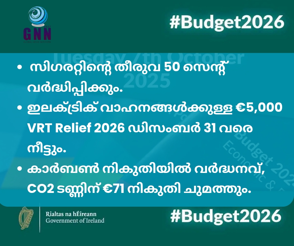 GNN NEWS IRELAND നിന്നുള്ള പ്രധാന വാര്ത്തകളും, ബ്രേക്കിംഗ് ന്യൂസുകളും വാട്സാപ്പില് ലഭിക്കുവാന് താഴെയുള്ള ലിങ്കില് ക്ലിക്ക് ചെയ്ത് ജോയിന് ചെയ്യുക.