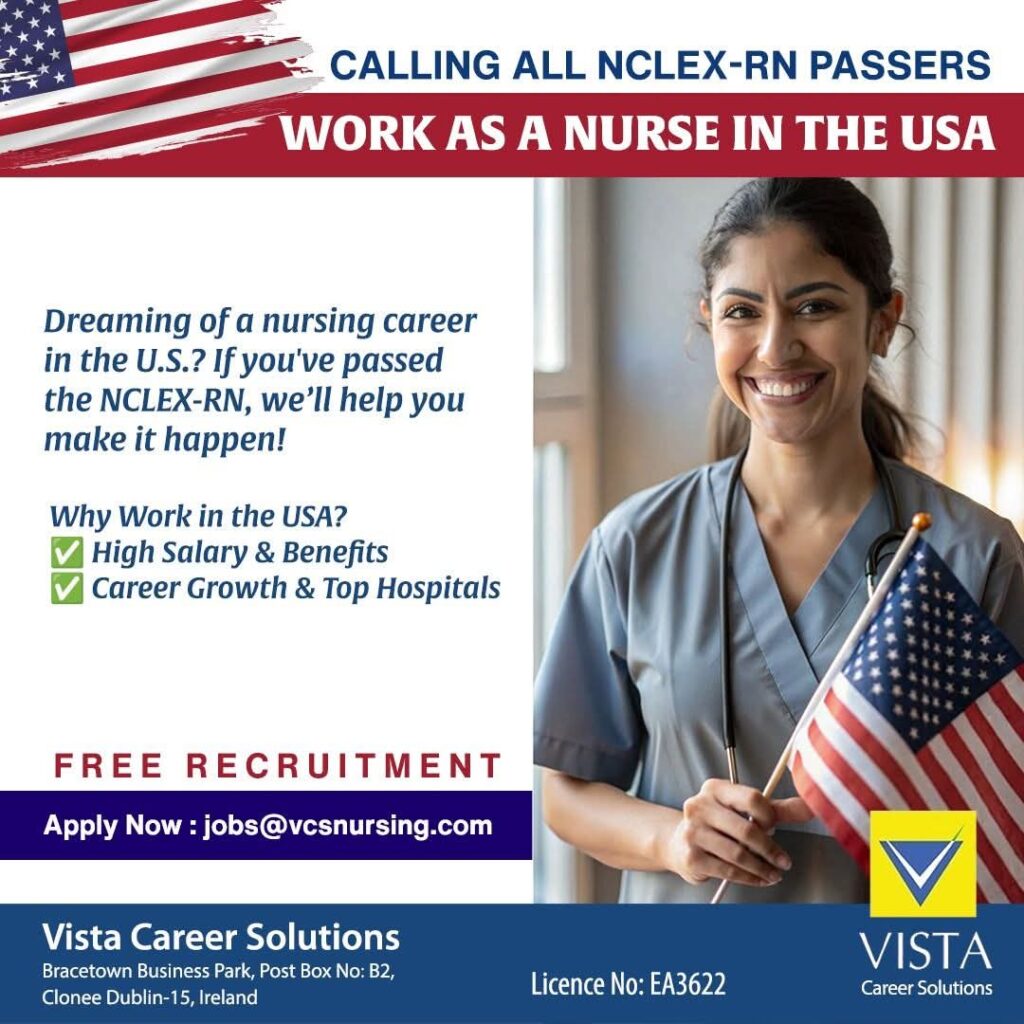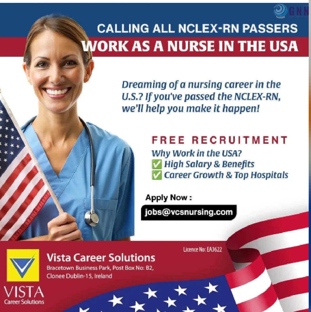 അമേരിക്കയിൽ നഴ്സിംഗ് ജോലി സ്വപ്നം കാണുന്നവർക്ക് മികച്ച അവസരങ്ങൾ ഒരുക്കി Vista Career Solutions. NCLEX-RN പാസ്സായ നേഴ്സുമാർക്ക് ഫ്രീ റിക്രൂട്ട്മെന്റിൽ അമേരിക്കയിലേക്ക് പറക്കാൻ അവസരം. ഉയർന്ന ശമ്പളവും ആനുകൂല്യങ്ങളും ഉൾപ്പെടെ നിങ്ങൾ ആഗ്രഹിക്കുന്ന കരിയർ ഇപ്പോൾ സ്വന്തമാക്കാൻ Vista Career Solutions വഴിയൊരുക്കുന്നു. jobs@vcsnursing.com എന്ന ലിങ്ക് വഴി ഇപ്പോൾ തന്നെ അപേക്ഷിക്കാം.