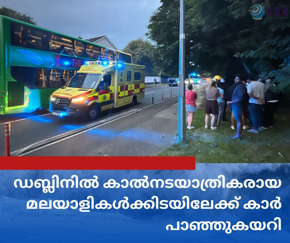 ഡബ്ലിനിൽ കാൽനടയാത്രികരായ മലയാളികൾക്കിടയിലേക്ക് കാർ പാഞ്ഞുകയറി
