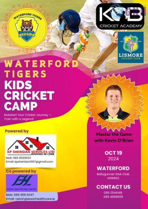 വാട്ടർഫോർഡ്: വാട്ടർഫോർഡ് ടൈഗേഴ്സ് ക്രിക്കറ്റ് ക്ലബിന്റെ ആഭിമുഖ്യത്തിൽ കുട്ടികൾക്കായി ക്രിക്കറ്റ് ക്യാമ്പ് ഒരുക്കുന്നു. അയർലൻഡ് ക്രിക്കറ്റ് ഇതിഹാസം കെവിൻ o’brien നേതൃത്വം നൽകുന്ന ക്യാമ്പ് ഒക്ടോബർ 19 ന് 1.30 മുതൽ ബാലിഗണ്ണർ GAA ഇൻഡോർ സ്റ്റേഡിയത്തിൽ വെച്ച് നടത്തപ്പെടുന്നു. ഭാവി അയർലൻഡ് ക്രിക്കറ്റിനായി ഒരുപിടി മികച്ച കളിക്കാരെ വാർത്തെടുക്കുക എന്ന ലക്ഷ്യംമുൻനിർത്തി ടൈഗേഴ്സ് അണിയ്ചൊരുക്കുന്ന ക്യാമ്പ് ഏറെ ആവേശത്തോടയാണ് രക്ഷകർത്താക്കളും കുട്ടികളും കാത്തിരിക്കുന്നത്. ക്യാമ്പിന്റെ തുടർച്ചയായി കുട്ടികളുടെ കഴിവും പ്രായവും അനുസരിച്ചുള്ള കൂടുതൽ പരിശീലന ക്യാമ്പുകൾ 2025 ജനുവരി മുതൽ സങ്കടിപ്പിക്കാൻ ഉള്ള ഒരുക്കങ്ങളുമായി ടൈഗേഴ്സ് മുന്നോട്ട് പോകുന്നു. ചുരുങ്ങിയ കാലയളവിനുള്ളിൽ അയർലൻഡ് ക്രിക്കറ്റിൽ മികച്ച ടീമായി പേരെടുത്ത ക്ലബിന് പിന്തുണയുമായി 150 ലതികം വർഷം പഴക്കം ഉള്ള ലിസ്മോർ ക്രിക്കറ്റ് ക്ലബും ക്യാമ്പിൽ പങ്കെടുക്കുന്നു. ക്യാമ്പിന്റെ മുഖ്യ സ്പോണർസ് ആയ KP Sheridan Roofing, Essar Healthcare Limited ഉം ക്യാമ്പിന്റെ വിജയത്തിനായി ക്ലബിനോടപ്പം നിൽക്കുന്നു.