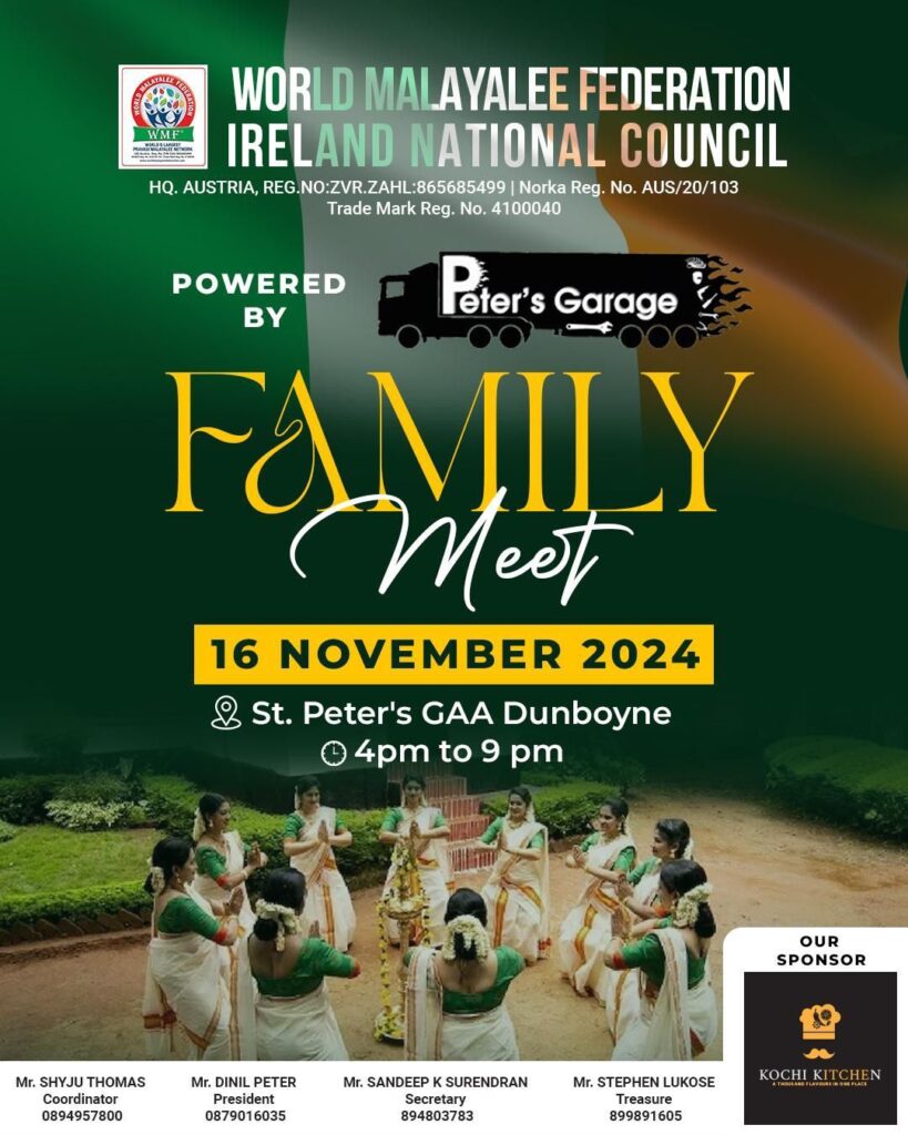 ഡൺബോയിനിലുള്ള GAA ക്ലബ്ബിൽ വച്ച് വൈകുന്നേരം അഞ്ചു മണിക്ക് വിവിധ കലാപരിപാടികളോടുകൂടെ ആരംഭിച്ചു അത്താഴവിരുന്നോടും കൂടെ സമാപിക്കുന്നതായിരിക്കും എന്ന് അയർലണ്ട് നാഷണൽ കോർഡിനേറ്റർ ഷൈജു തോമസ്, പ്രസിഡന്റ് ഡിനിൽ പീറ്റർ, സെക്രട്ടറി സന്ദീപ് കെ എസ്, ട്രെഷറർ സ്റ്റീഫൻ ലൂക്കോസ് എന്നിവർ അറിയിച്ചു. അയർലൻഡിന് അകത്തും പുറത്തുമുള്ള, വിവിധ രാഷ്ട്രങ്ങളിൽ നിന്നുള്ള, ഈ പരിപാടിയിൽ പങ്കെടുക്കാൻ ആഗ്രഹിക്കുന്ന WMF ന്റെ അംഗങ്ങളെയും സുഹൃത്തുക്കളെയും സംഘാടകർ സ്വാഗതം ചെയ്യുന്നു.