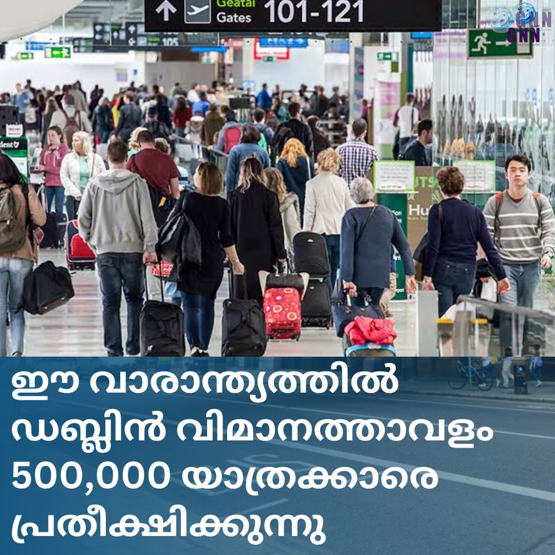 വരുന്ന ബാങ്ക് ഹോളിഡേ വാരാന്ത്യത്തിൽ ഡബ്ലിൻ വിമാനത്താവളം ഏകദേശം അര ദശലക്ഷം യാത്രക്കാരെ പ്രതീക്ഷിക്കുന്നു.വെള്ളിയാഴ്ച മുതൽ തിങ്കളാഴ്ച വരെ പ്രതിദിനം 115,000-ത്തിലധികം യാത്രക്കാരെയാണ് വിമാനത്താവളം പ്രതീക്ഷിക്കുന്നത്, മൊത്തം 480,000 പേർ അതിന്റെ രണ്ട് ടെർമിനലുകളിലൂടെ കടന്നുപോകും. വെള്ളിയാഴ്ച മുതൽ തിങ്കളാഴ്ച വരെയുള്ള നാല് ദിവസങ്ങളിൽ ഏകദേശം 250,000 യാത്രക്കാർ ഡബ്ലിൻ വിമാനത്താവളത്തിൽ നിന്ന് യാത്ര പുറപ്പെടും, ഏകദേശം 230,000 യാത്രക്കാർ എത്തിച്ചേരും.