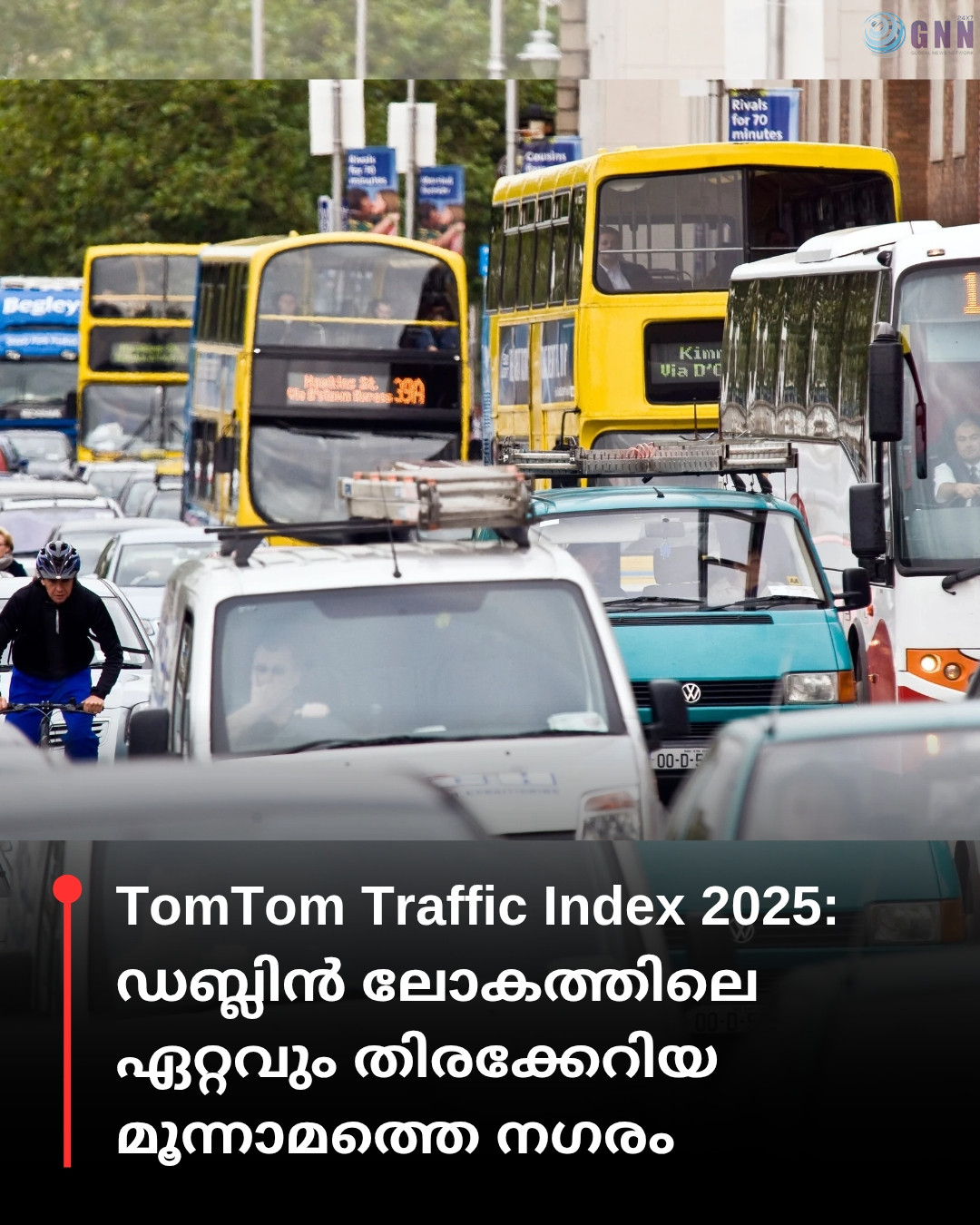 ലോകത്തിലെ ഏറ്റവും തിരക്കേറിയ മൂന്നാമത്തെ നഗരവും ഗതാഗത വേഗത കുറഞ്ഞ ആറാമത്തെ നഗരവുമാണ് ഡബ്ലിൻ.2025-ലെ ടോംടോം ട്രാഫിക് സൂചിക പ്രകാരമാണിത്. സത്നാവ് ഉൽപ്പന്നങ്ങൾക്ക് പ്രശസ്തമായ ഡച്ച് കമ്പനിയാണ് ടോംടോം. ഡബ്ലിൻ സിറ്റിയിൽ, തിരക്കുള്ള സമയത്തെ ശരാശരി വേഗത മണിക്കൂറിൽ 13.5 കിലോമീറ്ററാണ്. ഇത് 2024 ന് സമാനമാണ്. കഴിഞ്ഞ വർഷം ഡബ്ലിനിലെ ഗതാഗതക്കുരുക്കിന്റെ അളവ് ശരാശരി 72.9% ആയി, 2024 നെ അപേക്ഷിച്ച് 1.7% കൂടുതലാണിത്. 10 കിലോമീറ്റർ ഡ്രൈവിന് ആവശ്യമായ ശരാശരി സമയം 34 മിനിറ്റും 29 സെക്കൻഡും ആയിരുന്നു, 2024 നെ അപേക്ഷിച്ച് ഏകദേശം 58 സെക്കൻഡ് കൂടുതൽ.