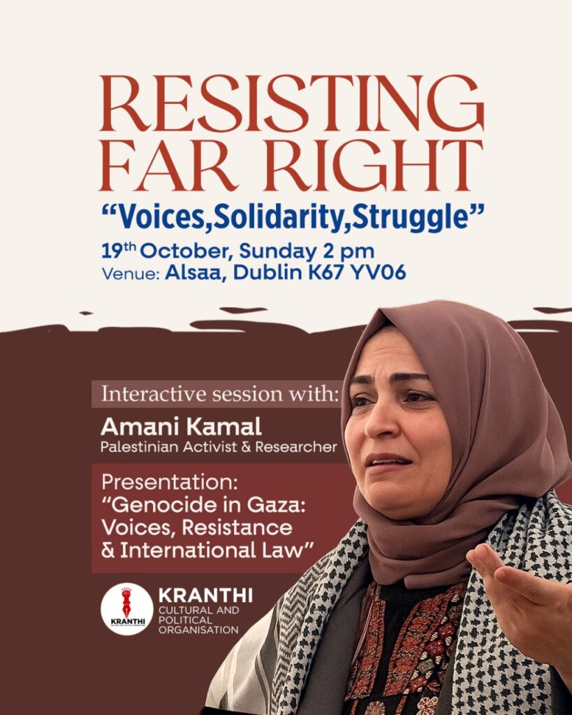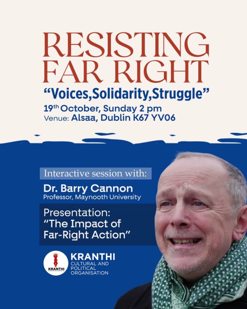 അയർലൻഡ് ഉൾപ്പെടെ ആഗോളതലത്തിൽ വർദ്ധിച്ചുവരുന്ന തീവ്ര വലതുപക്ഷ പ്രവർത്തനങ്ങൾക്കെതിരെയും ബോധപൂർവ്വം വലതു പക്ഷം നടത്തുന്ന നുണപ്രചരണങ്ങൾക്കെതിരെയും ആഗോളതലത്തിൽ പൊരുതുന്ന ശബ്ദങ്ങളെ ക്രാന്തി ഒരുമിപ്പിക്കുന്നു. ക്രാന്തി തീവ്ര-വലതുപക്ഷ നയങ്ങളെ കുറിച്ച് സംഘടിപ്പിക്കുന്ന സംവാദ സദസ്സിൽ സിപിഎമ്മിന്റെ മുൻപോളിറ്റ് ബ്യൂറോ മെമ്പറും കാൺപൂർ എംപിയും ആയിരുന്ന സുഭാഷിണി അലി മുഖ്യാതിഥിയാകും.