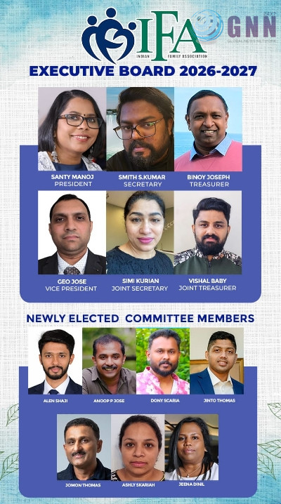 ഇന്ത്യൻ ഫാമിലി അസോസിയേഷൻ (IFA) 2026–2027 കാലയളവിലേക്കുള്ള പുതിയ എക്സിക്യൂട്ടീവ് ബോർഡ് അംഗങ്ങളെ തിരഞ്ഞെടുക്കപ്പെട്ടു. സമൂഹത്തിലെ ഐക്യവും സാംസ്കാരിക പാരമ്പര്യവും നിലനിർത്തുന്നതിനും സാമൂഹിക, സാംസ്കാരിക, സേവന പ്രവർത്തനങ്ങൾ ശക്തിപ്പെടുത്തുന്നതിനുമായി പ്രവർത്തിക്കുന്ന ഐ.എഫ്.എയുടെ പുതിയ നേതൃസംഘം വിവിധ മേഖലകളിൽ പ്രവർത്തന പരിചയമുള്ള അംഗങ്ങളെയാണ് ഉൾക്കൊള്ളുന്നത്.