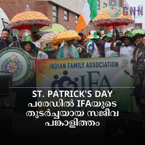 Drogheda: St. Patrick’s day പരേഡിൽ ഇന്ത്യൻ കമ്മ്യൂണിറ്റിയെ പ്രദിനിധീകരിച്ച് ഇന്ത്യൻ ഫാമിലി അസോസിയേഷൻ (IFA) സജീവമായി പങ്കെടുത്തു. ഭാരതത്തിന്റെ സംസ്കാരവും മഹത്വവും ഉയർത്തിപ്പിടിച്ചുകൊണ്ടുള്ള ആഘോഷത്തിൽ കഴിഞ്ഞ വർഷത്തേക്കാൾ കൂടുതൽ ആളുകൾ പങ്കെടുത്തു. പരേഡിൽ പങ്കെടുത്തവർക്ക് ആവേശം പകർന്നുകൊണ്ട് മുൻ വർഷത്തേക്കാൾ അധികം കാണികളും തടിച്ചുകൂടിയിരുന്നു.