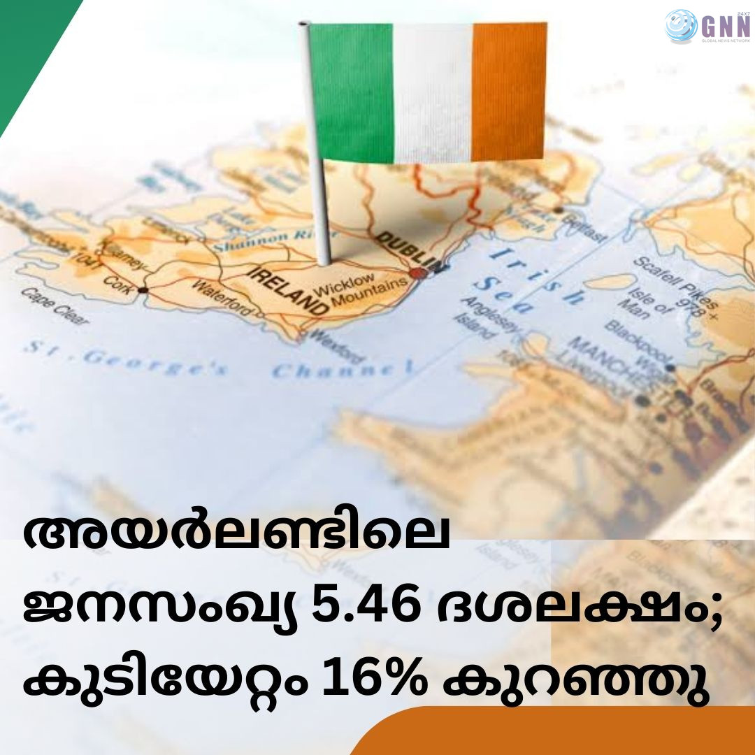 ഏപ്രിൽ വരെയുള്ള കാലയളവിൽ അയർലണ്ടിലേക്കുള്ള കുടിയേറ്റം 16% കുറഞ്ഞു. സെൻട്രൽ സ്റ്റാറ്റിസ്റ്റിക്സ് ഓഫീസിന്റെ പുതിയ കണക്കുകൾ പ്രകാരം 125,300 പേർ രാജ്യത്തേക്ക് എത്തി. തുടർച്ചയായ നാലാം വർഷമാണ് ഒരു ലക്ഷത്തിലധികം കുടിയേറ്റക്കാർ അയർലണ്ടിൽ എത്തുന്നത്. തിരിച്ചയച്ച ഐറിഷ് പൗരന്മാരിൽ 31,500 പേരും മറ്റ് യൂറോപ്യൻ യൂണിയൻ പൗരന്മാരിൽ 25,300 പേരും യുകെയിൽ 4,900 പേരും മറ്റ് രാജ്യങ്ങളിൽ നിന്നുള്ള 63,600 പേരും ഉണ്ടെന്നാണ് കണക്ക്. അയർലണ്ടിലെ ജനസംഖ്യ 5.46 ദശലക്ഷമായി വർദ്ധിച്ചു,കുടിയേറ്റവും കുറഞ്ഞു.