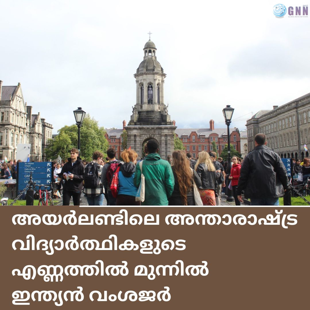 അയർലണ്ടിലെ അന്താരാഷ്ട്ര വിദ്യാർത്ഥികളിൽ ഏറ്റവും കൂടുതൽ ഇന്ത്യൻ വംശജരായ വിദ്യാർത്ഥികൾ. ഏറ്റവും പുതിയ കണക്കുകൾ പ്രകാരം നിലവിൽ 9,175 ഇന്ത്യൻ വംശജരായ വിദ്യാർത്ഥികൾ അയർലണ്ടിൽ പഠിക്കുന്നുണ്ട്. മൊത്തം അന്താരാഷ്ട്ര വിദ്യാർത്ഥി ജനസംഖ്യയുടെ 10% ആണിത്. കഴിഞ്ഞ വർഷം 44,500 അന്താരാഷ്ട്ര വിദ്യാർത്ഥികൾ അയർലണ്ടിലെത്തി. മുൻ വർഷം ഇത് 40,000 ആയിരുന്നു, 10% വർദ്ധനവ്. തുടർച്ചയായ നാലാം വർഷമാണ് ഈ വളർച്ച കൈവരിക്കുന്നത്.