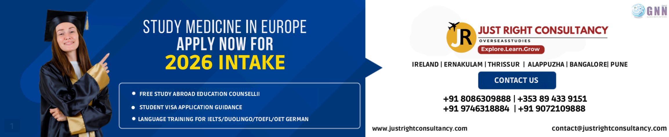 GNN NEWS IRELAND നിന്നുള്ള പ്രധാന വാര്ത്തകളും, ബ്രേക്കിംഗ് ന്യൂസുകളും വാട്സാപ്പില് ലഭിക്കുവാന് താഴെയുള്ള ലിങ്കില് ക്ലിക്ക് ചെയ്ത് ജോയിന് ചെയ്യുക.