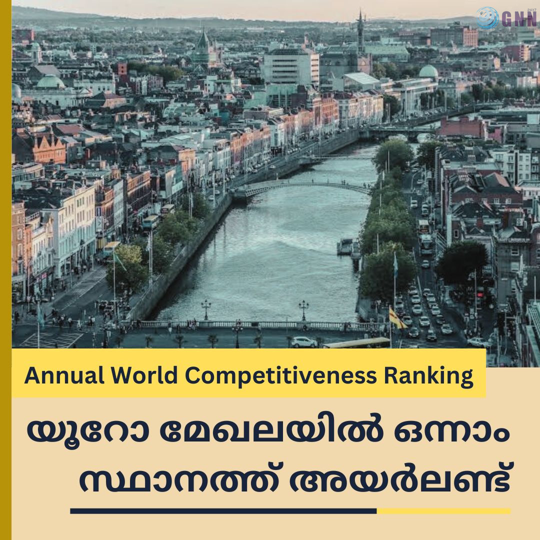 യൂറോ മേഖലയിലെ ഏറ്റവും മത്സരക്ഷമതയുള്ള രാജ്യമായി അയർലണ്ട്. ഇന്റർനാഷണൽ ഇൻസ്റ്റിറ്റ്യൂട്ട് ഫോർ മാനേജ്മെന്റ് ഡെവലപ്മെന്റിന്റെ ഏറ്റവും പുതിയ Annual World Competitiveness Rankings, 69 സമ്പദ്വ്യവസ്ഥകളെ അവലോകനം ചെയ്തു. 2025 ൽ ലോകത്തിലെ ഏറ്റവും മത്സരാധിഷ്ഠിതമായ ഏഴാമത്തെ സമ്പദ്വ്യവസ്ഥയായി അയർലണ്ടിനെ പട്ടികപ്പെടുത്തി, കഴിഞ്ഞ വർഷം നാലാം സ്ഥാനത്തായിരുന്നു. 2023-ൽ തന്നെ ഏറ്റവും മത്സരാധിഷ്ഠിതമായ രണ്ടാമത്തെ സമ്പദ്വ്യവസ്ഥയായി രാജ്യം തിരഞ്ഞെടുക്കപ്പെട്ടു. സാമ്പത്തിക പ്രകടനം, സർക്കാർ കാര്യക്ഷമത, ബിസിനസ് കാര്യക്ഷമത, അടിസ്ഥാന സൗകര്യങ്ങൾ എന്നിവയുൾപ്പെടെ നാല് സ്തംഭങ്ങളിലായി 262 ലധികം സൂചകങ്ങളെ അടിസ്ഥാനമാക്കിയാണ് റാങ്കിംഗ്.