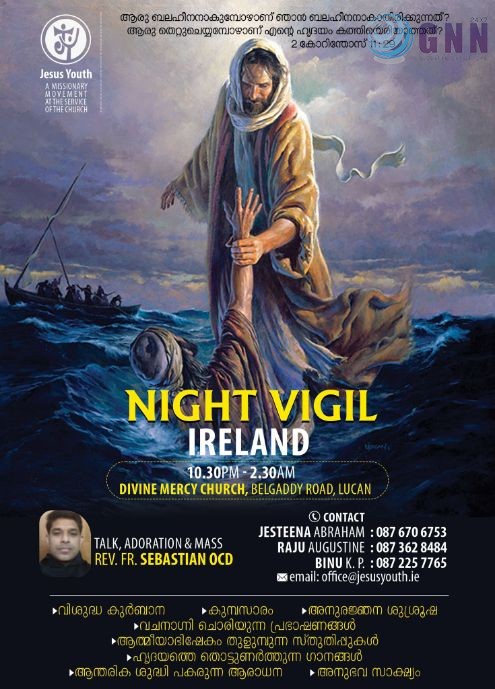 സാധാരണഗതിയിൽ എല്ലാ മാസവും നാലാമത്തെ വെള്ളിയാഴ്ചയാണ് നൈറ്റ് വിജിൽ നടത്തിവരുന്നത്. ഈ മാസത്തെ നാലാം വെള്ളിയാഴ്ച (ആഗസ്റ്റ് 26) BELGADDY ROADലെ DIVINE MERCY CHURCHൽ ആണ് നൈറ്റ് വിജിൽ നടത്തപ്പെടുന്നത്. 10.30PM-2.30AM വരെയാണ് DIVINE MERCY CHURCHൽ നൈറ്റ് വിജിൽ ക്രമീകരിച്ചിരിക്കുന്നത്.