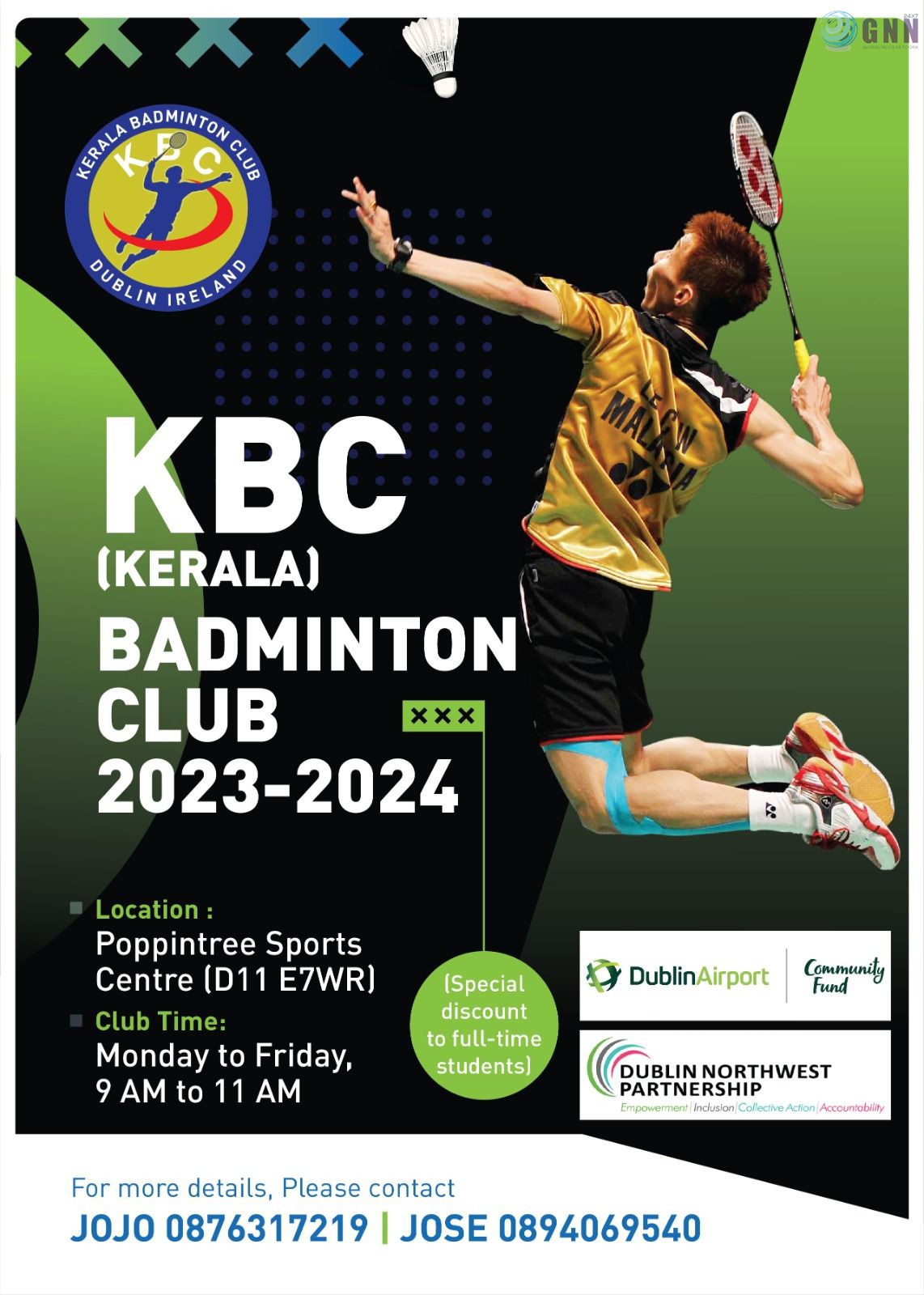 കായിക ലോകത്ത് യുവതാരങ്ങൾക്ക് മികച്ച അവസരമൊരുക്കി KBC (KERALA BADMINTON CLUB) Dublin. 2023-24 വർഷത്തെ അഡ്മിഷൻ തുടരുകയാണ്. സെപ്റ്റംബർ 4 മുതൽ പരിശീലനം ആരംഭിച്ചു കഴിഞ്ഞു.നിലവിൽ 50 ഓളം ക്കായികതാരങ്ങൾ ക്ലബ്ബിൽ അംഗങ്ങളാണ്.