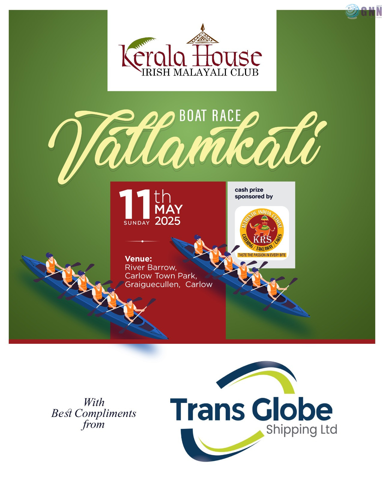 അയർലണ്ടിന്റെ ജലരാജാക്കന്മാരെ എതിരേൽക്കാൻ ഓളപ്പരപ്പുകൾ ഒരുങ്ങിക്കഴിഞ്ഞു. കേരള ഹൗസ് വള്ളംകളി മെയ്‌ 11ന് നടക്കും. കാർലോ ബാറോ നദിയിലാണ് നടക്കുന്ന ജലമാമാങ്കത്തിനായുള്ള ഒരുക്കങ്ങൾ തുടങ്ങിക്കഴിഞ്ഞു. വിജയികൾക്കുള്ള സമ്മാനങ്ങൾ സ്പോൺസർ ചെയ്‌തിരിക്കുന്നത് KPS AUTHENTIC INDIAN CUISINE ആണ്.